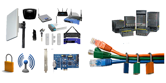 Routeurs, switches, hubs, racks, pare-feu, serveurs, NAS, solutions de stockage, onduleurs (UPS), câblage et caméras IP, etc.