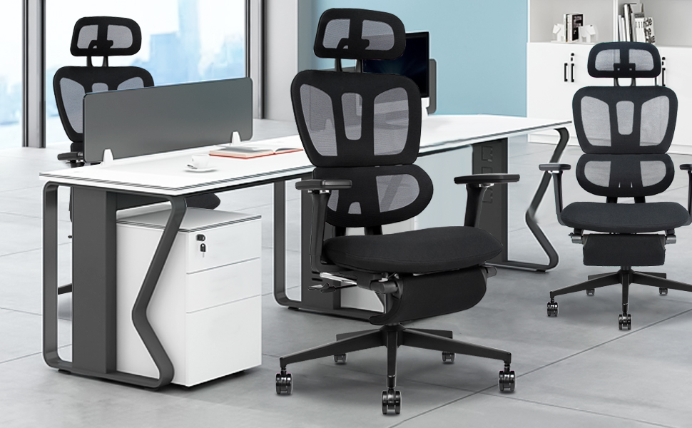 Bureaux, tables, chaises, armoires, rayonnages et mobilier de rangement, etc.